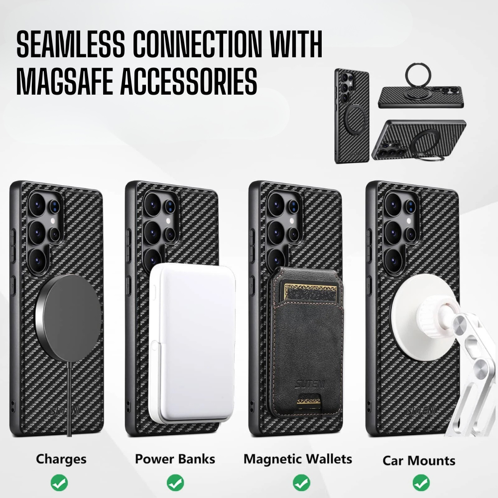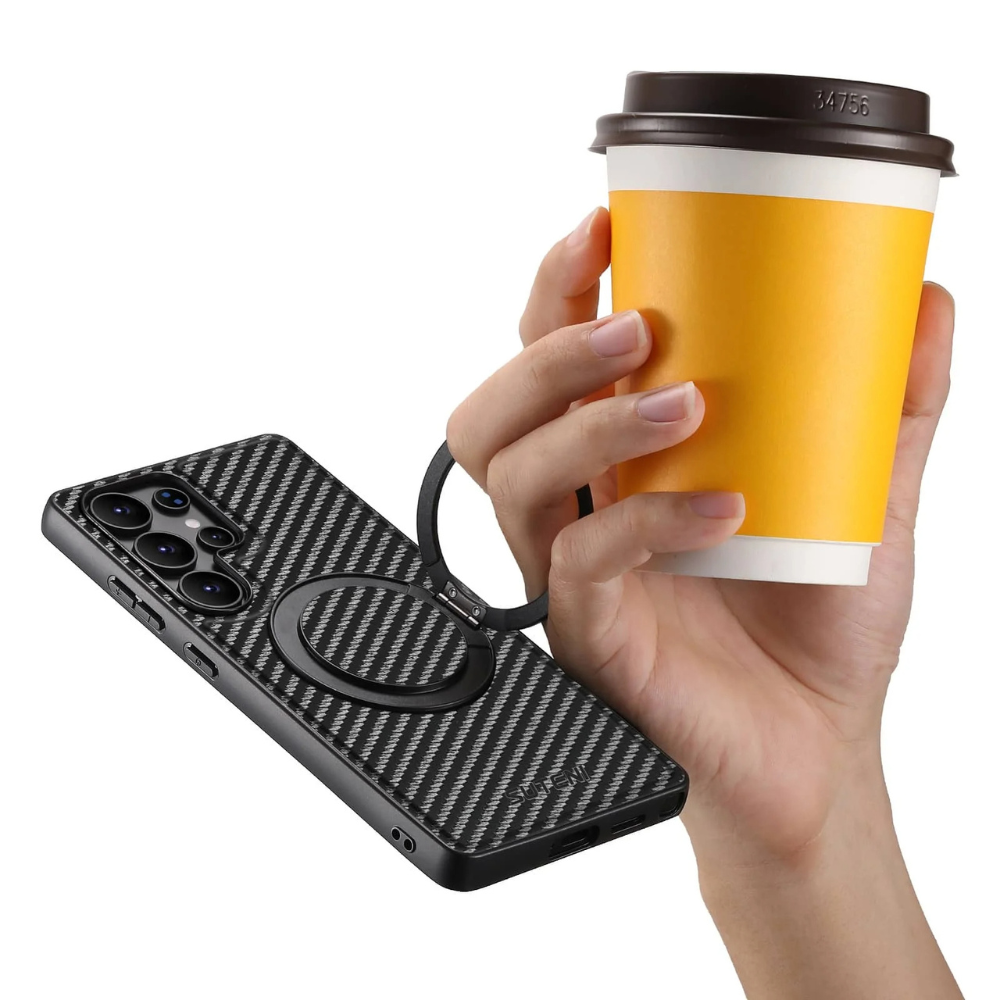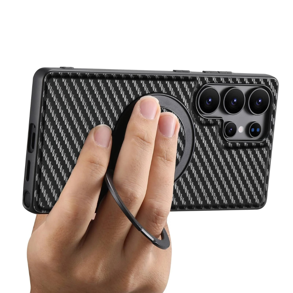 For those who demand both durability and style, the Frux Carbon Fiber Shockproof Galaxy Case delivers. Designed for new Samsung models, this case features vegan leather with a carbon fiber texture, giving it a premium, modern look while providing enhanced grip and protection.