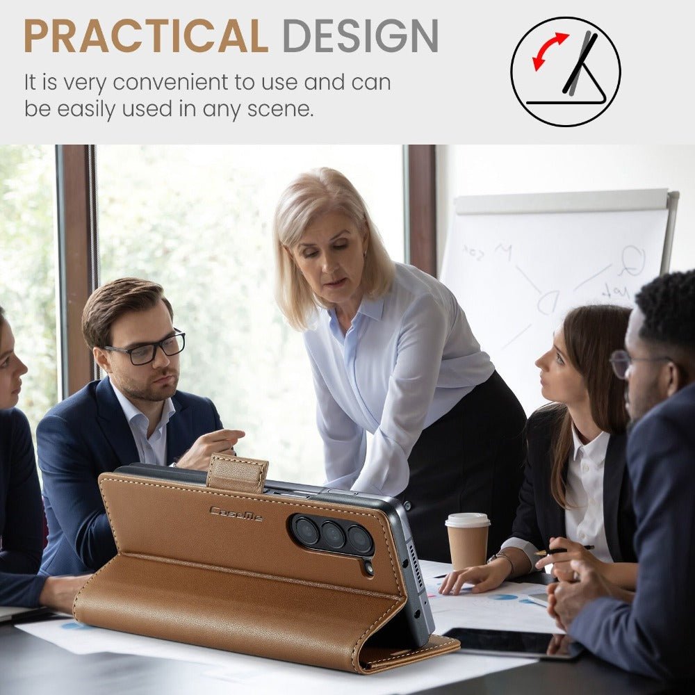 The Concero Premium Leather Wallet Case for Samsung Galaxy Z Fold is the perfect fusion of elegance, functionality, and advanced design. This Premium Vegan Leather Flip Case comes with a built-in card holder and offers stylish phone protection while keeping your essentials close at hand.