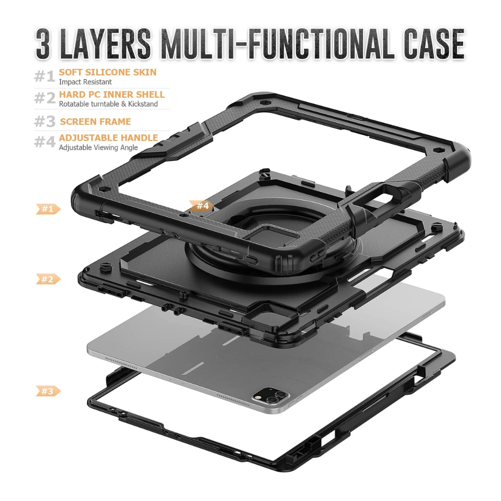 Shield your iPad Pro with the Labia Heavy Duty Case, designed to provide top-tier protection and unmatched versatility. This military-grade shockproof case is crafted to withstand accidental drops and daily wear, ensuring your iPad Pro remains safe and intact.