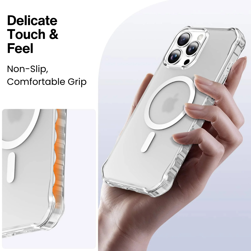 The Firmo Slim Shockproof MagSafe Case is built for those who want sleek style with serious protection. Designed for iPhone 12 to 17 series, this case combines a slim and lightweight design with reinforced corners to absorb impact and protect against drops.