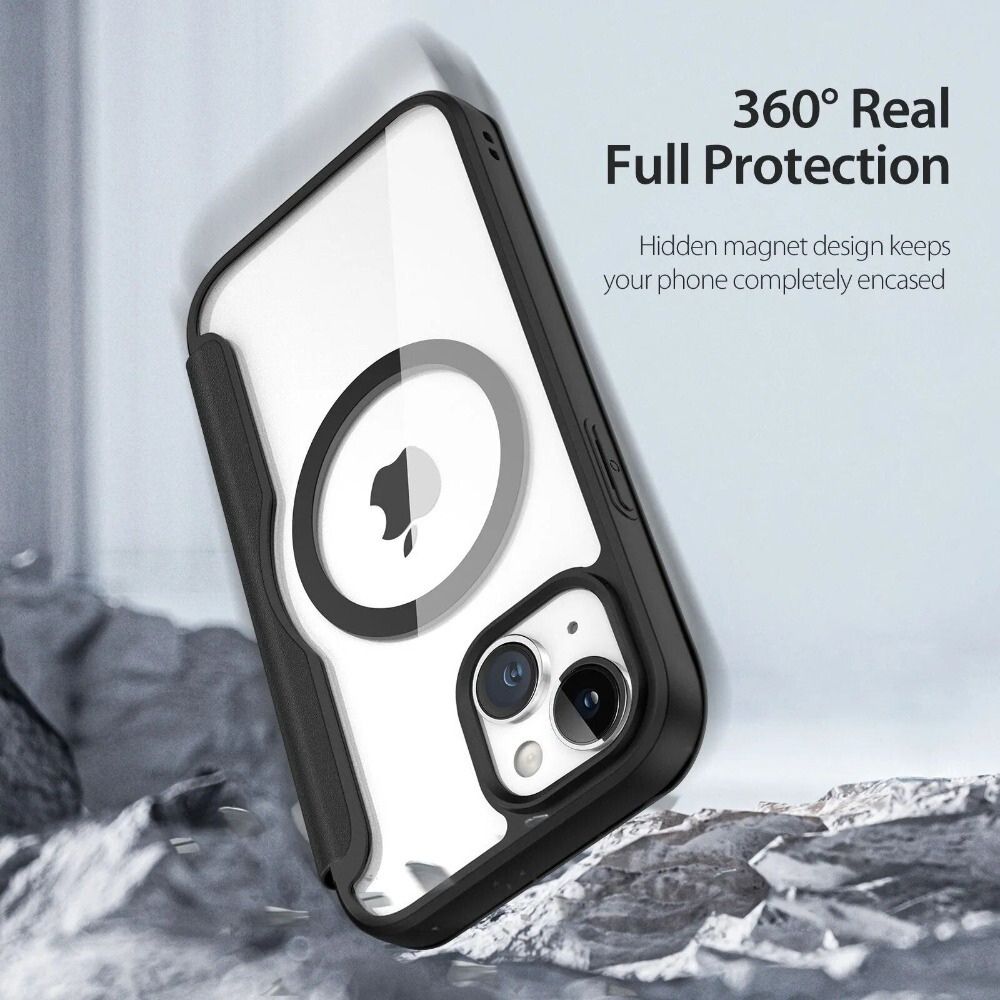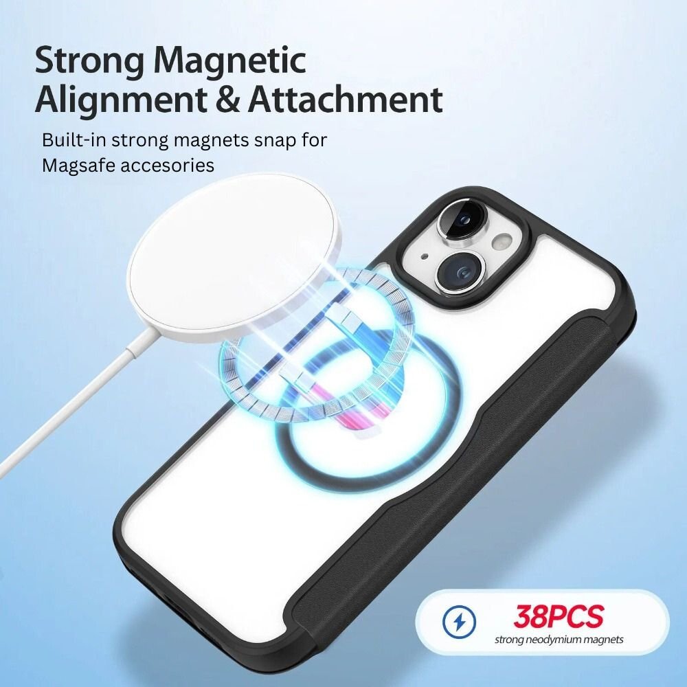 Its strong magnetic attachment not only ensures a secure connection with Mag-Safe chargers but also extends its utility to power banks, car mounts, and phone stands. The hidden magnetic closure adds a touch of sophistication, ensuring that your iPhone remains securely encased while maintaining a streamlined appearance.