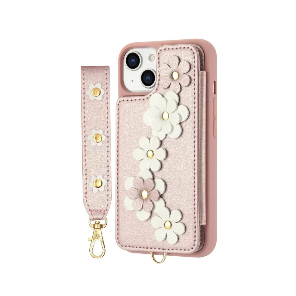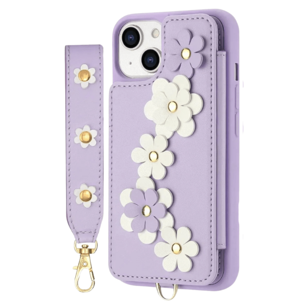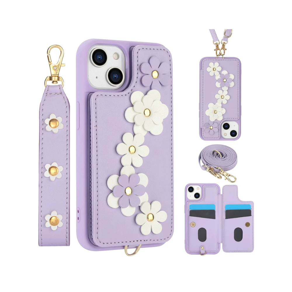 I bought this case for my iPhone. Its beautifully designed and versatile. The floral pattern is adorable, and the leather gives it an elegant touch. It has both a wrist strap and a crossbody strap, which makes it perfect for traveling.