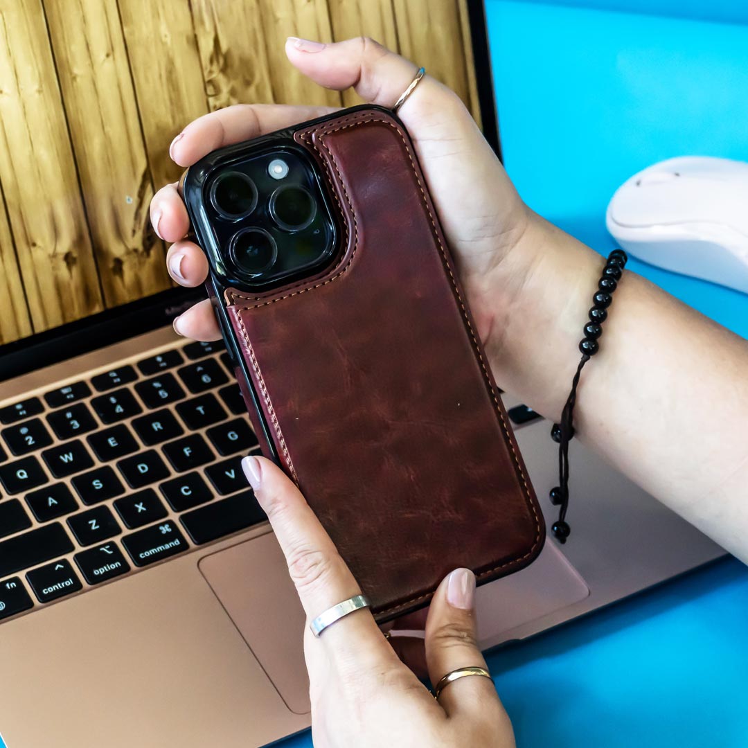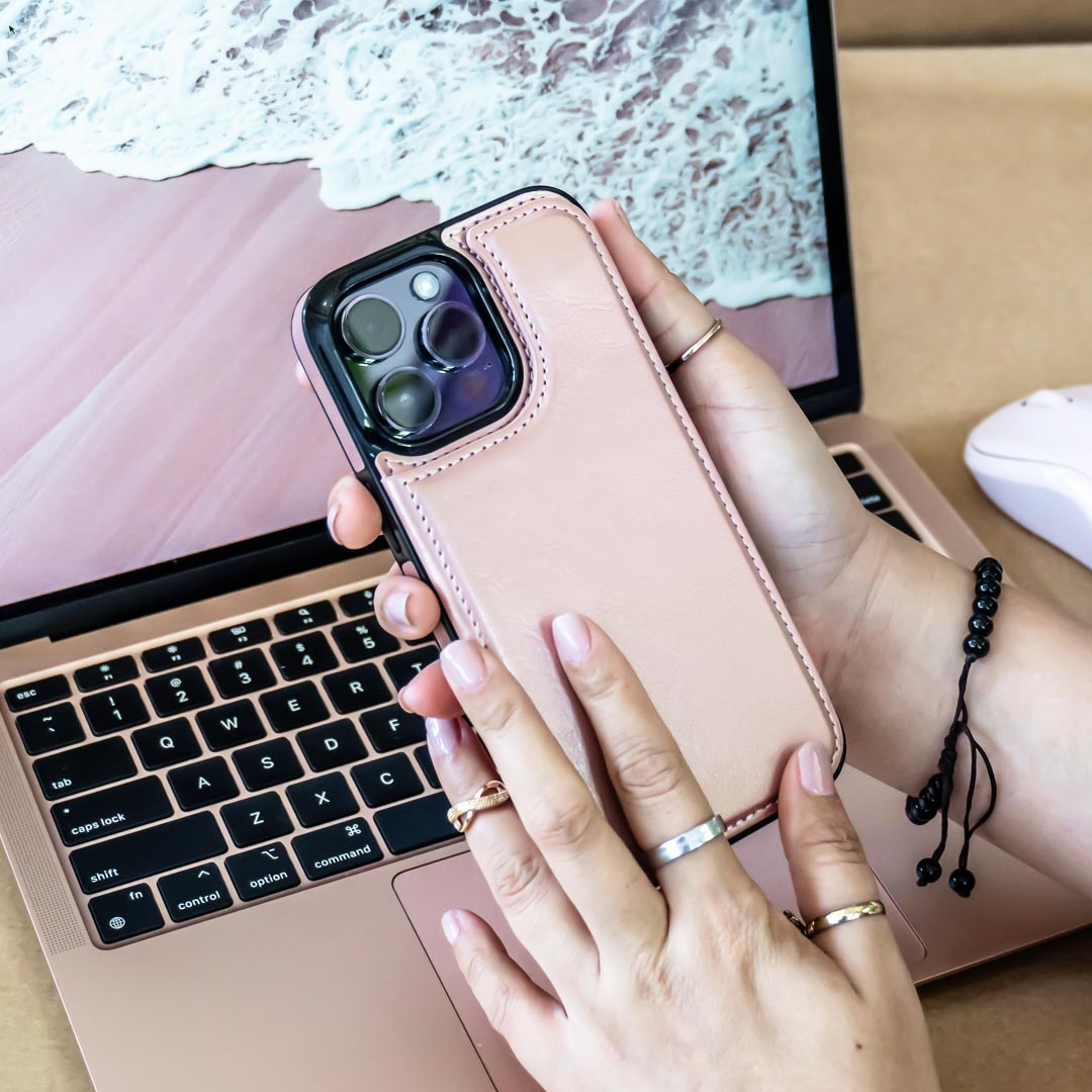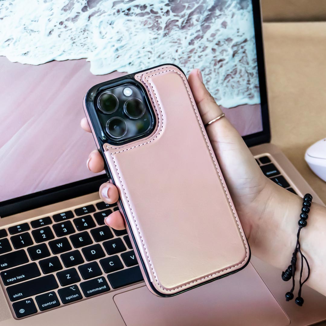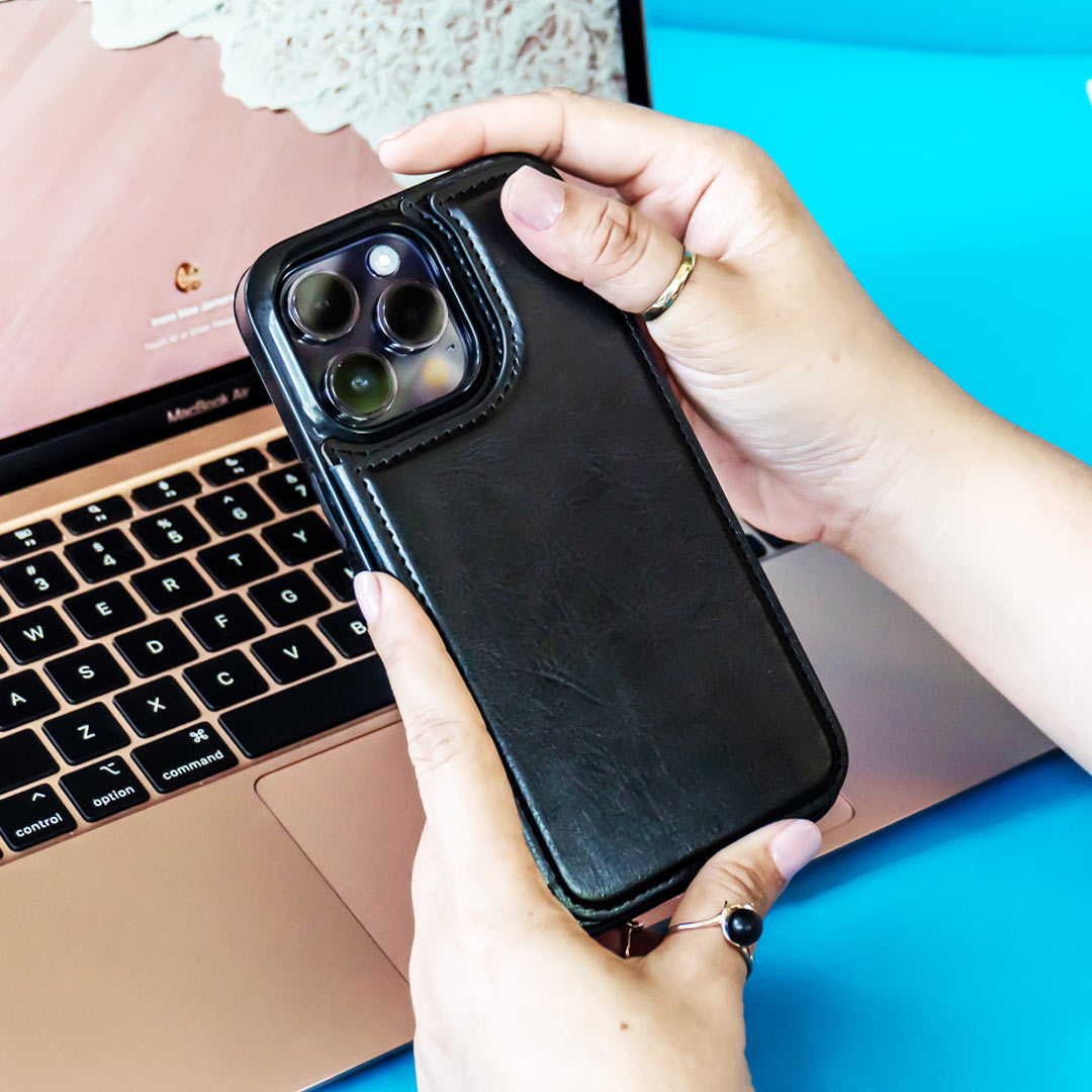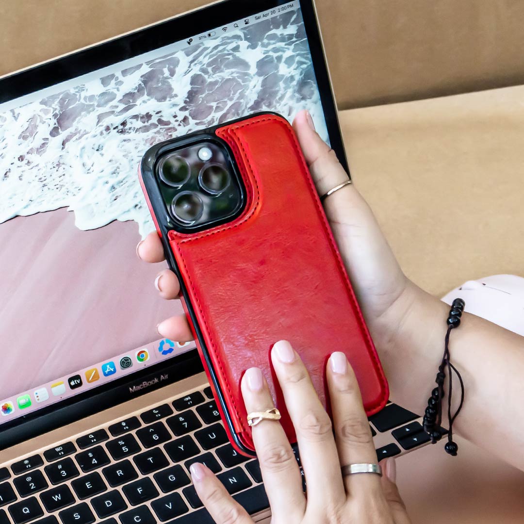 The case is handcrafted from premium-quality vegan leather and features an elastic closure to secure your iPhone. In addition, it gives you convenient access to your iPhone camera so you can quickly capture memorable moments.
