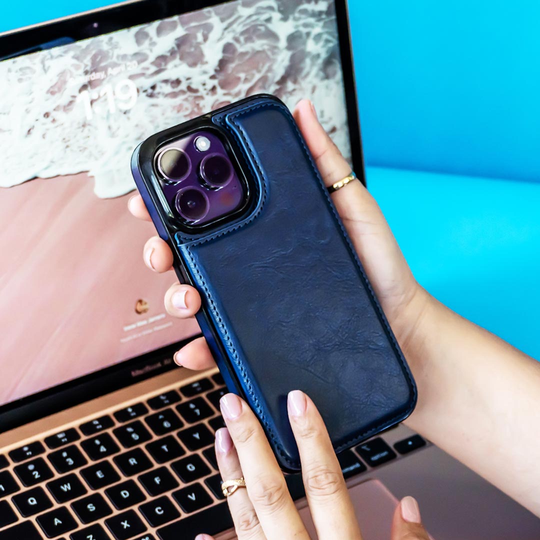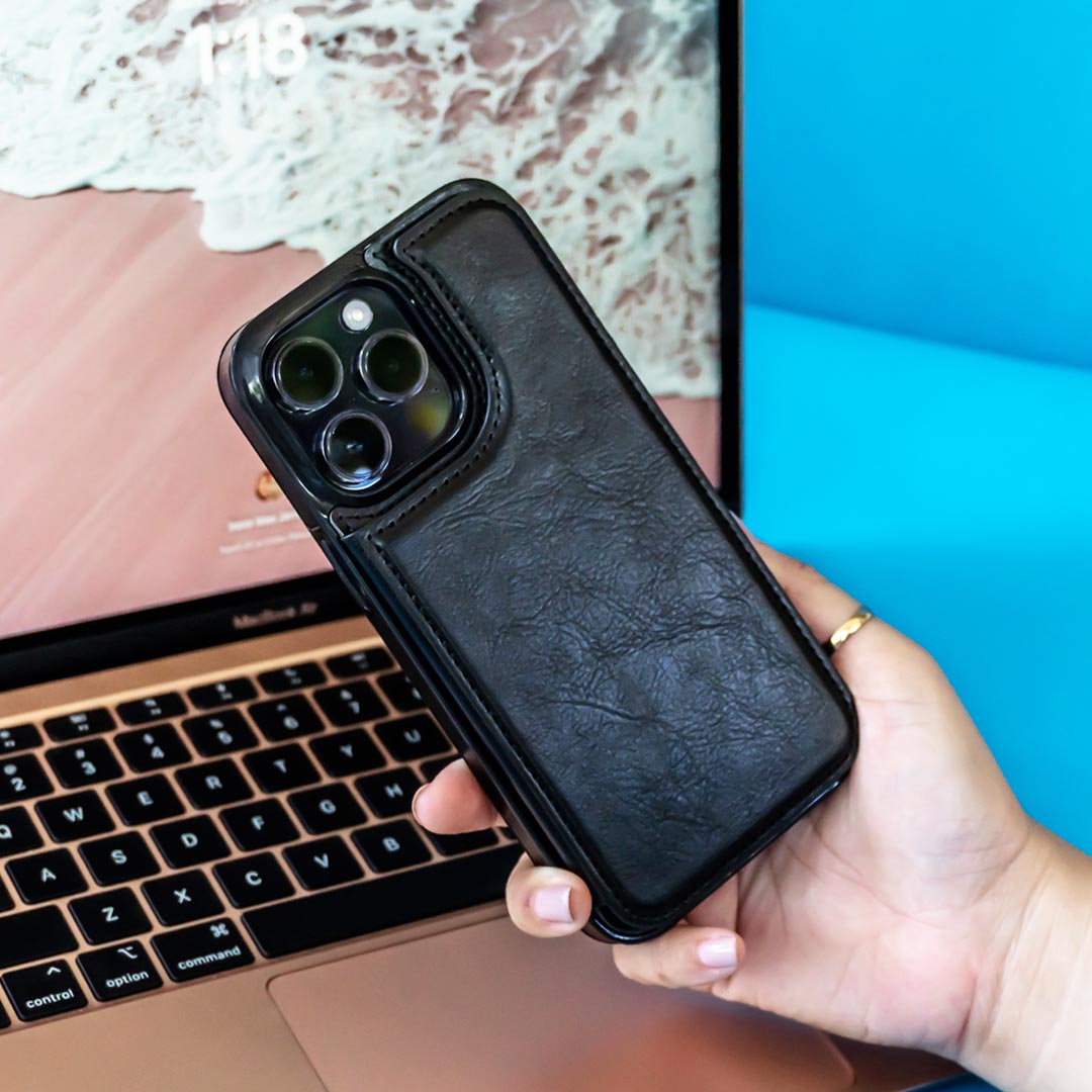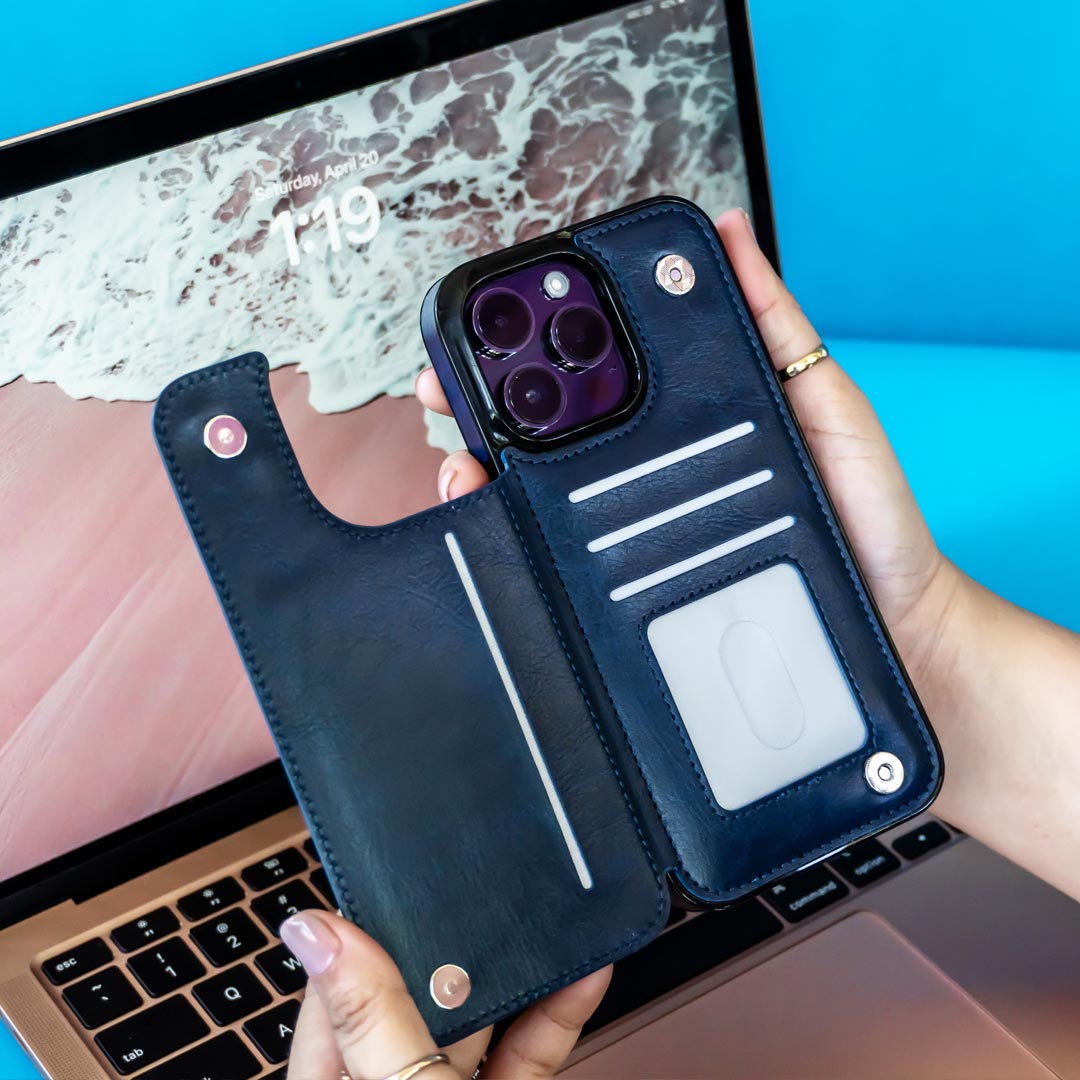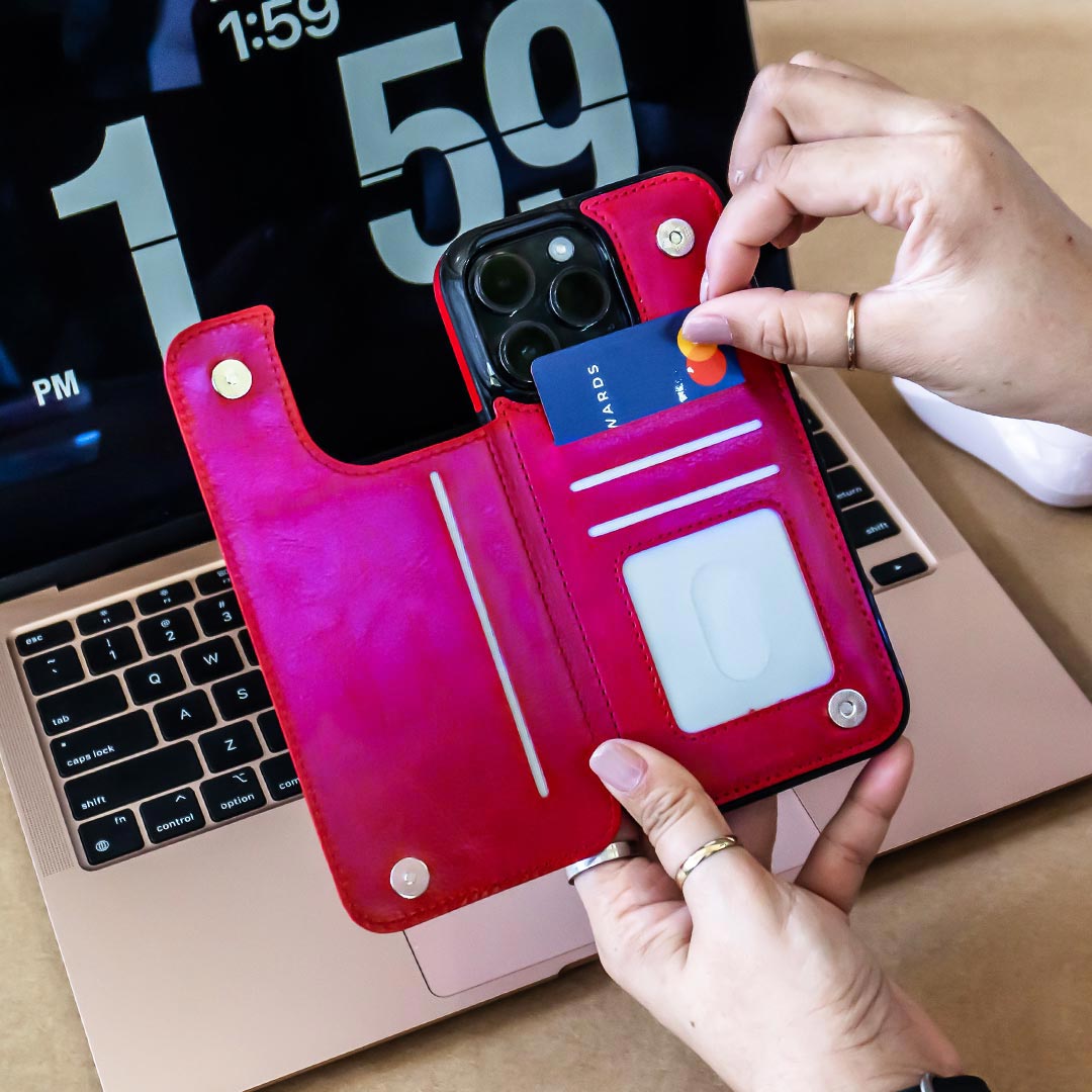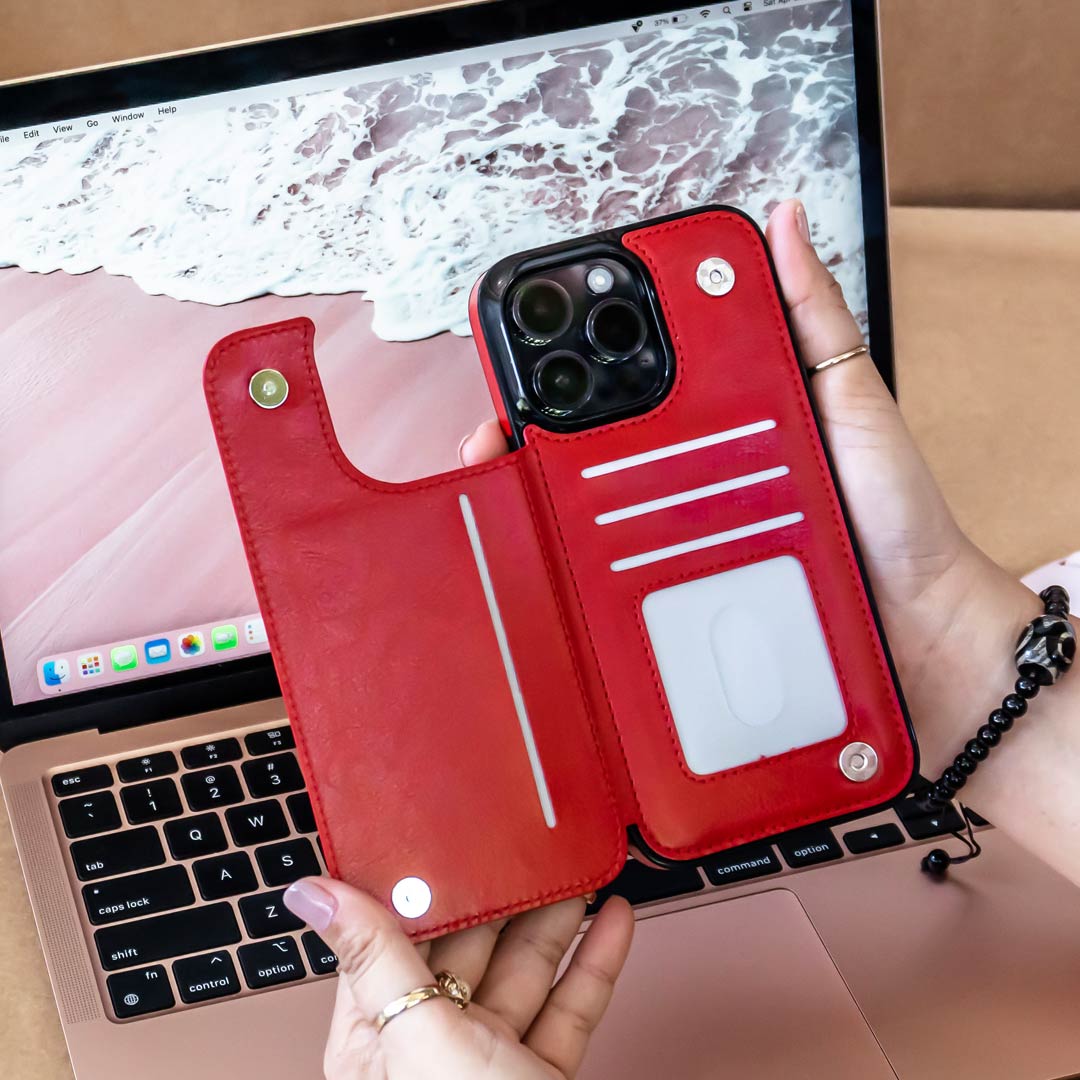 Protect your iPhone in style with this slim and functional leather wallet case. A fashionably slim, all-in-one design, the Leather Wallet Flip Case for iPhone offers solid protection along with space for your essential ID and credit cards.